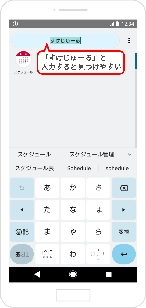 検索バーに「すけじゅーる」と入力するとすぐに見つかります。
